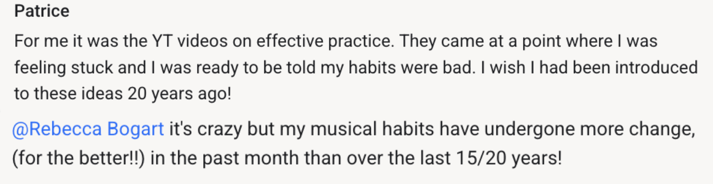 I created these two resources to help you practice smarter and play with more ease. I’d love to hear from you! Which ideas resonated the most? What surprised you? Have you seen a change in your progress after working with the material? Do you have any questions?